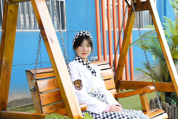 西点学习没有想象中那么简单,掌握方法需要不断地练习,要学会用巧劲儿。一开始她总是做不好,蛋糕抹胚不均匀,裱花歪歪扭扭,学到的和做出来的完全不是一回事。可是作为班长,就是要起带头作用,班长怎么能掌握不好基本功呢?靠着这股不服气的韧性,一遍又一遍地练习,渐渐掌握技巧后,一切就变得简单了,她对于西点技能的兴趣也更大了,期待着接下来更高难度的技能学习。